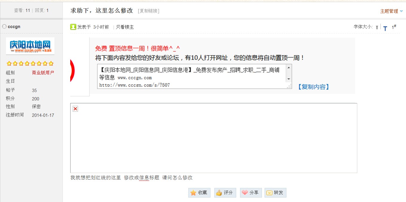 我问的就是 免费置顶这里 我想让他显示信息标题 而不是网站标题 我觉得显示信息标题 大家更愿意转发