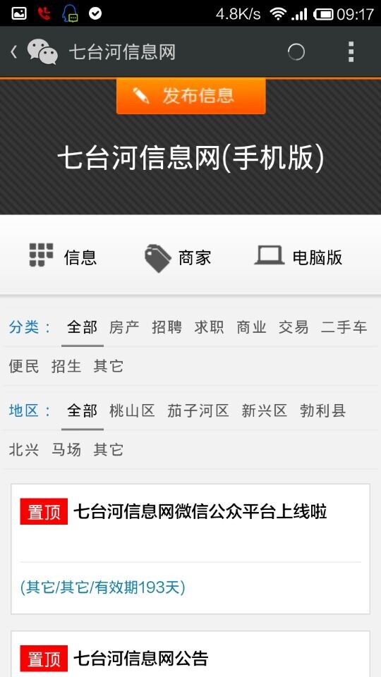 分类信息,受手机屏幕制约,查找必须逐页下翻。