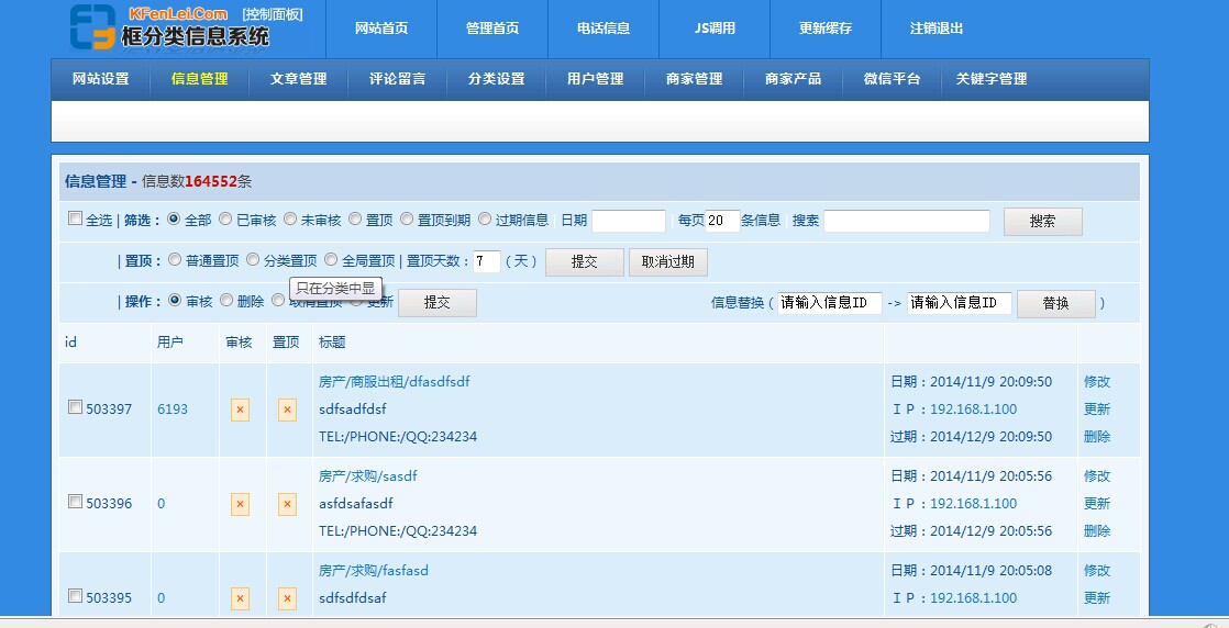 框分类:人性化的同城分类信息系统,我们永远站在用户的角度!一次性购买,终身升级!
