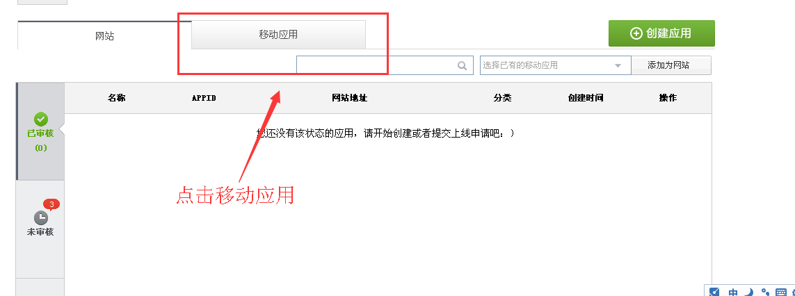 进入后可以看到创建应用,点击创建应用,选择网站就行!