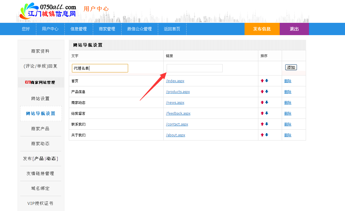 【交流】商家登陆后台后,怎样给网站添加网站导航?