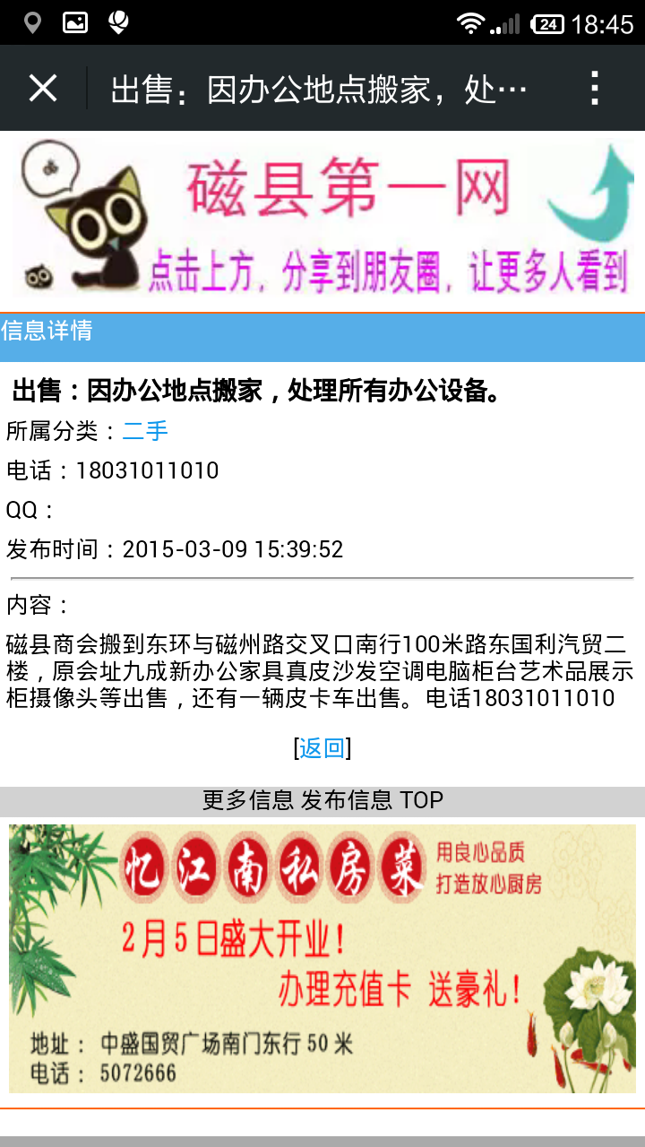 买房卖房、招聘求职、二手买卖、同城交友,找商家请上磁县第一网 www.cixian001.com.