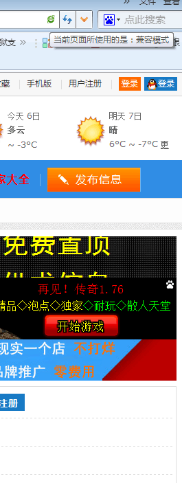 这个是极速模式的显示全部的广告,下面那张图是兼容模式,和本地ie浏览器打开是一样的。怎么显示这样啊。怎么解决呢!!