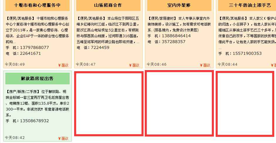 像上图这种情况,当一行显示条数不是4的整数倍数时,可以加判断语句,让空白位置显示预置网站设定的内容,这样免得不好看。