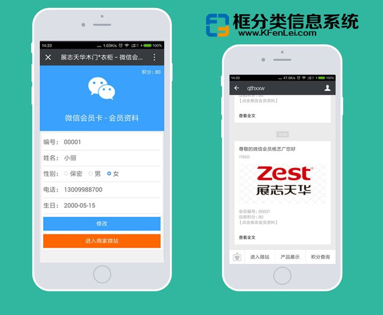 框分类9.3中微信会员卡功能,会员可自己修改资料。