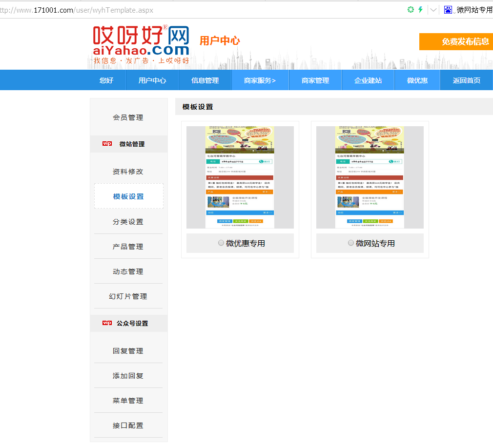 现在关注微信自动回复的是微优惠,这样前面的客户就需要改 我建了个模板不知道能不能行的通