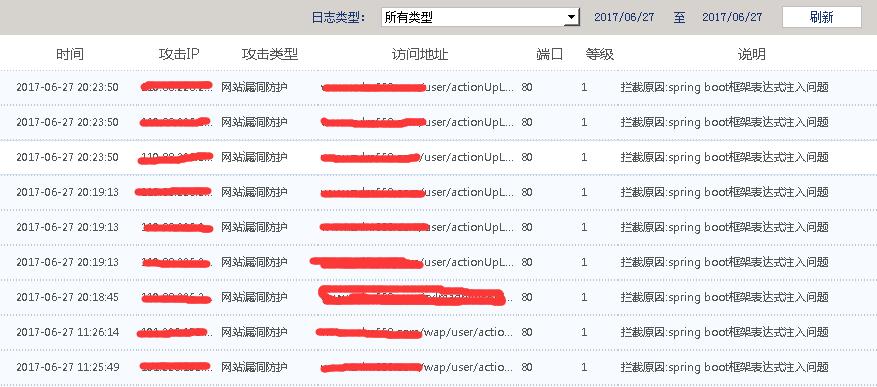 因服务安全软件在新升级规则后,出现的网站spring boot框架表达式注入问题,以前未注意到这个,查询的相关问题,请在下一版本对spring boot框架升级,命中规则数据如下: