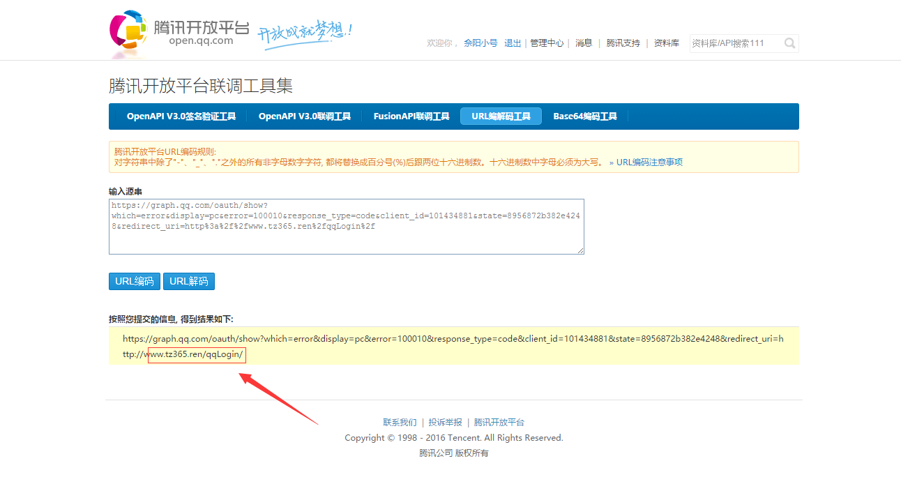 正确格式为 http://www.tz365.ren/qqLogin/ 把我的网址换成你的就行了。www不可以少噢