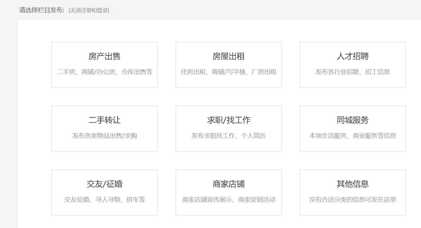 建议精简一下发布信息的页面,改成这样的。官方的信息选择界面,分类太多了,看着头疼。