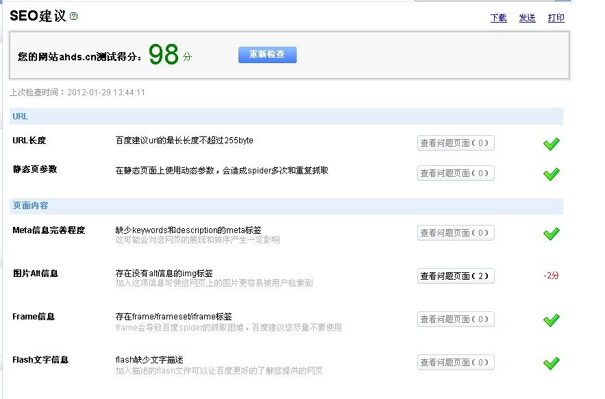 七台河系统的百度SEO高达98分