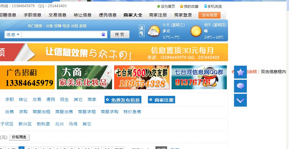 当用户浏览信息时,有时很有很多信息对自己有用处,又不能一条一条手动记录下来。QTH8分类信息系统最增加了信息收藏功能,用户双击信息框内空白处收藏信息,再次双击取消收藏!收藏后可点击头部“我的收藏”,查看收藏的信息。这样用户可以随时登录网站查看对自己有用的信息,方便查找,又增加了网站的粘性!