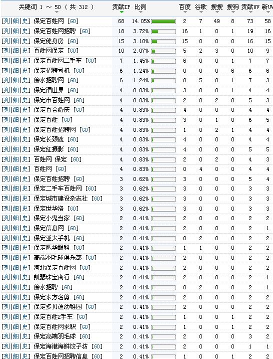 可能最近关注的博客比较少,更新也不是很频繁,也没有重点去做保定百姓网这个词,排名略有下降。我也没有想去再做这个词,感觉没有必要,基本上没有什么流量,所以现在也不太在意排名了,排了几个月的前三名,也没有看见什么来的,要来的也是同行搜索的可怜的几个,所以对于我们小站来说,想保持流量的话,还得靠长尾,每天通过长尾来我博客的基本有50ip左右,我发现很多朋友其实都没有意思到长尾的重要性,这篇文章stone和大家一起来探讨下