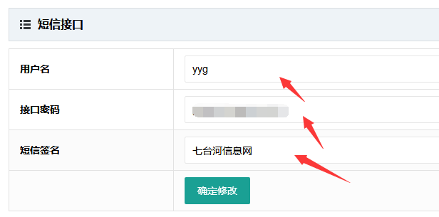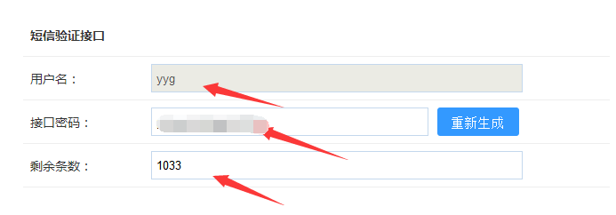 把短信验证接口中的用户名和接口密码填到您自己的网站后台的短信接口中