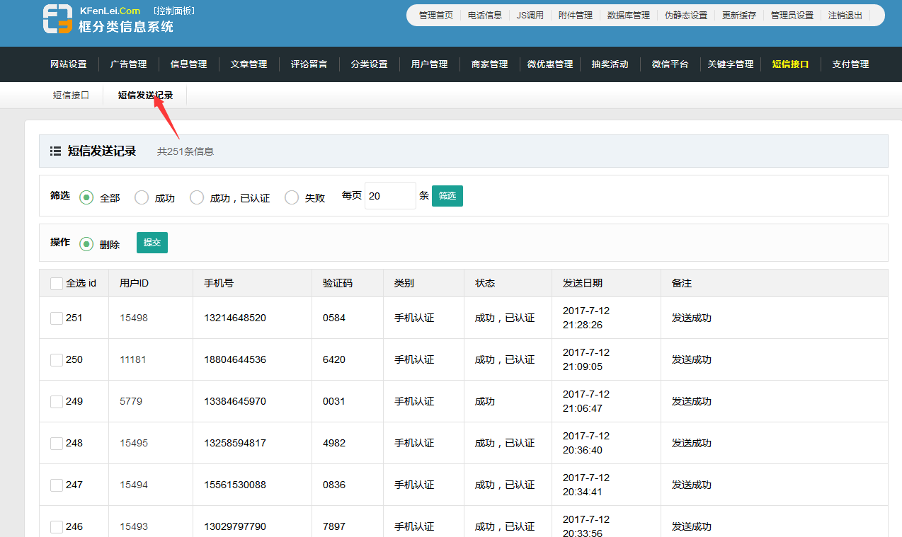 所以这里框分类和互易短信合作,为大家开发了一个通用的接口。框分类的站长可以直接在官网购买短信,最低额度为8元(100条)。以最少的成本就可以支持手机短信认证功能了。