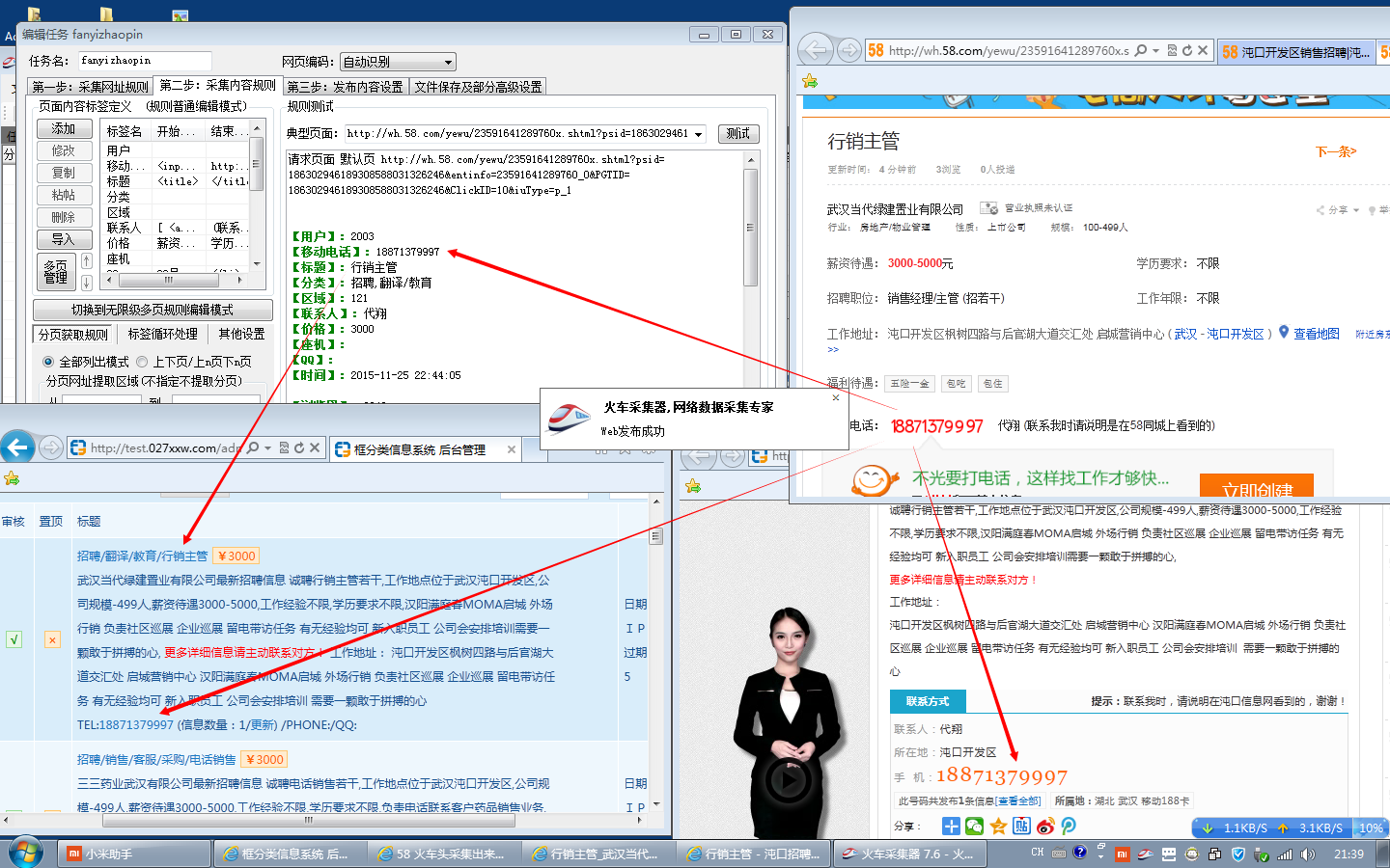 100元【37条招聘采集规则+2条租房采集规则+1条便民采集规则+商业版车头】采集方法不难,难就难在规则的编写上!