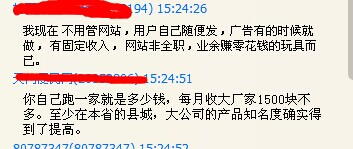 广告盈利:框分类用户可以自己在方框和列表两种模式中切换,用户视觉体验更好。减少操作,增加程序的易用性,让您的网站成为用户的首选,网站的多样式置顶功能可以让客户的信息得到最充分的展示。用户发布信息后,会自动生成一个网站宣传独有链接(如:http://www.qth8.com/s/?198001)。用户只要把此链接分享给好友或论坛、微博或其它媒体上。当有一定数量的网友打开此链接后(不同IP),信息将自动置顶一周。这样每个用户都会成为您的免费宣传员,让网站知名度成倍增长。 人气上来了。商家广告便会随之而来,人脉便是财脉,这是比较常规的盈利模式,