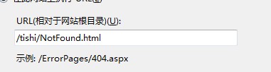 您把IIS中,把您这个站的404错误页面设置成url类型的,地址是“/tishi/NoFound.html” 是可以了