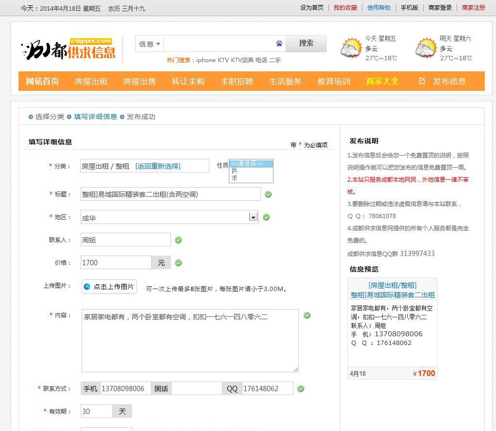 个人觉得加上这一项,比如:招聘和求职就不用单独分开设类型了,直接招聘求职(供/求)!个人的想法,不代表大家的想法,供参考!
