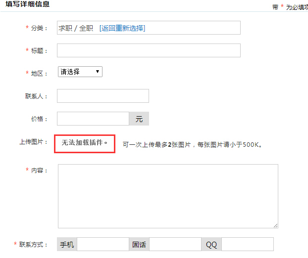 【交流】发布信息时上传图片时无法加载插件