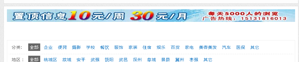 如果想加到分类信息的列表页面,而不是首页,可以添加分类信息头部广告