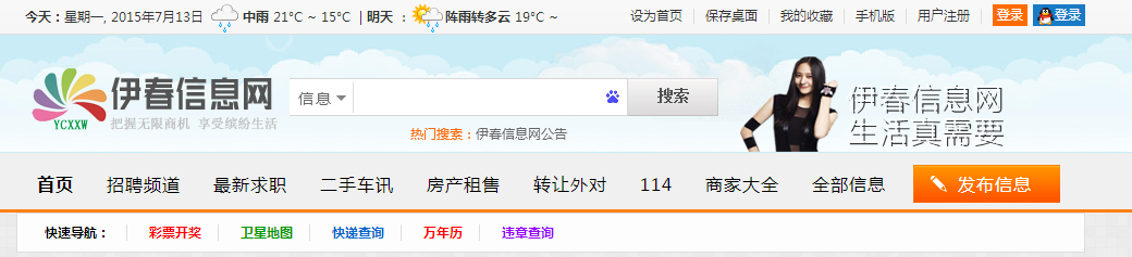 今天改良了一下菜单栏,免得所有的框分类系统长得都一样,模仿了临沂信息网,就是还差两个元素不知道怎么弄