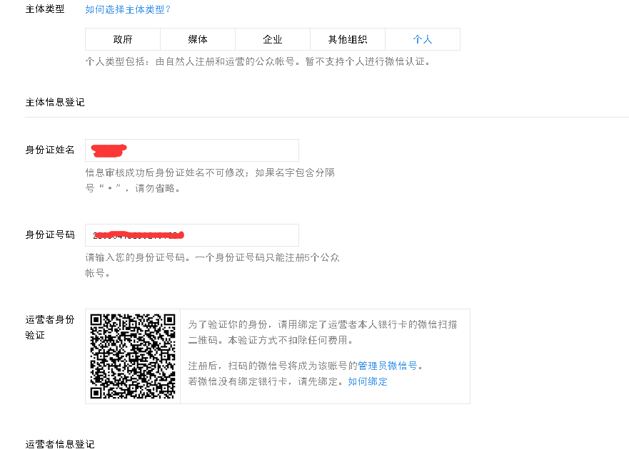 注意:注册微信公众号订阅号需准备运营者身份证一张,微信号需绑定运营者银行卡。