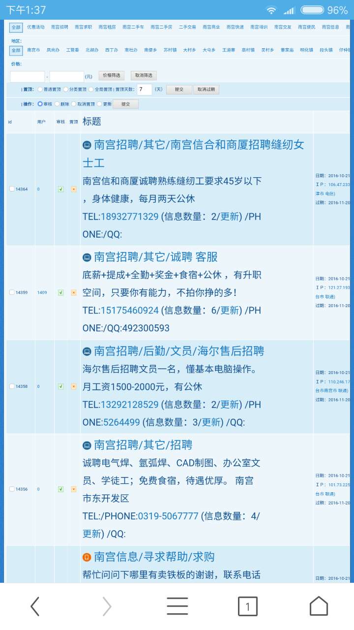 其实后台信息管理里面的信息列表不要显示内容,只要显示标题就可以了。显示内容不耐看。