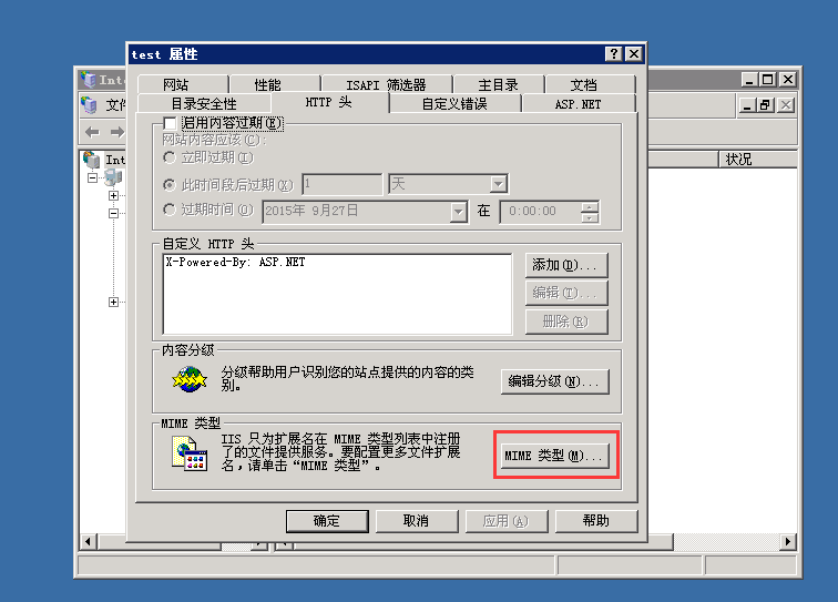 1、先打开IIS-找到你网站点右键属性-HTTP头-点击MIME类型