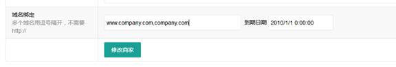 绑定商家顶级域名和二级域名方法相同,商家顶级域名需在网站后台– 商家管理– 修改对应商家