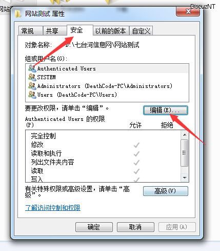 8、后台把刚才添加的这几个用户的权限都设置为完全控制就可以了