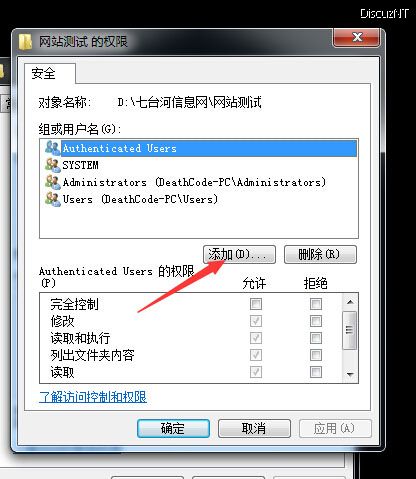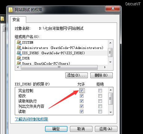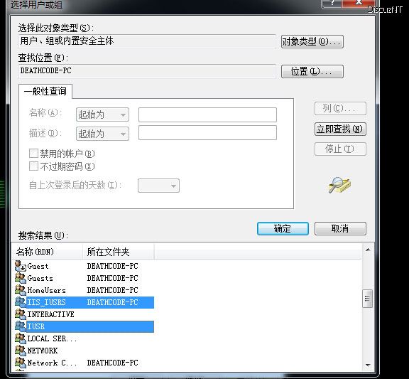 6、iis6请选择ASPNET 、IUSR_计算机名(每台服务器都不一样,只要看是IUSER_开头的就是了)、IIS_WPG这三个用户,iiS7请选择IUSR和IIS_IUSRS这两个用户