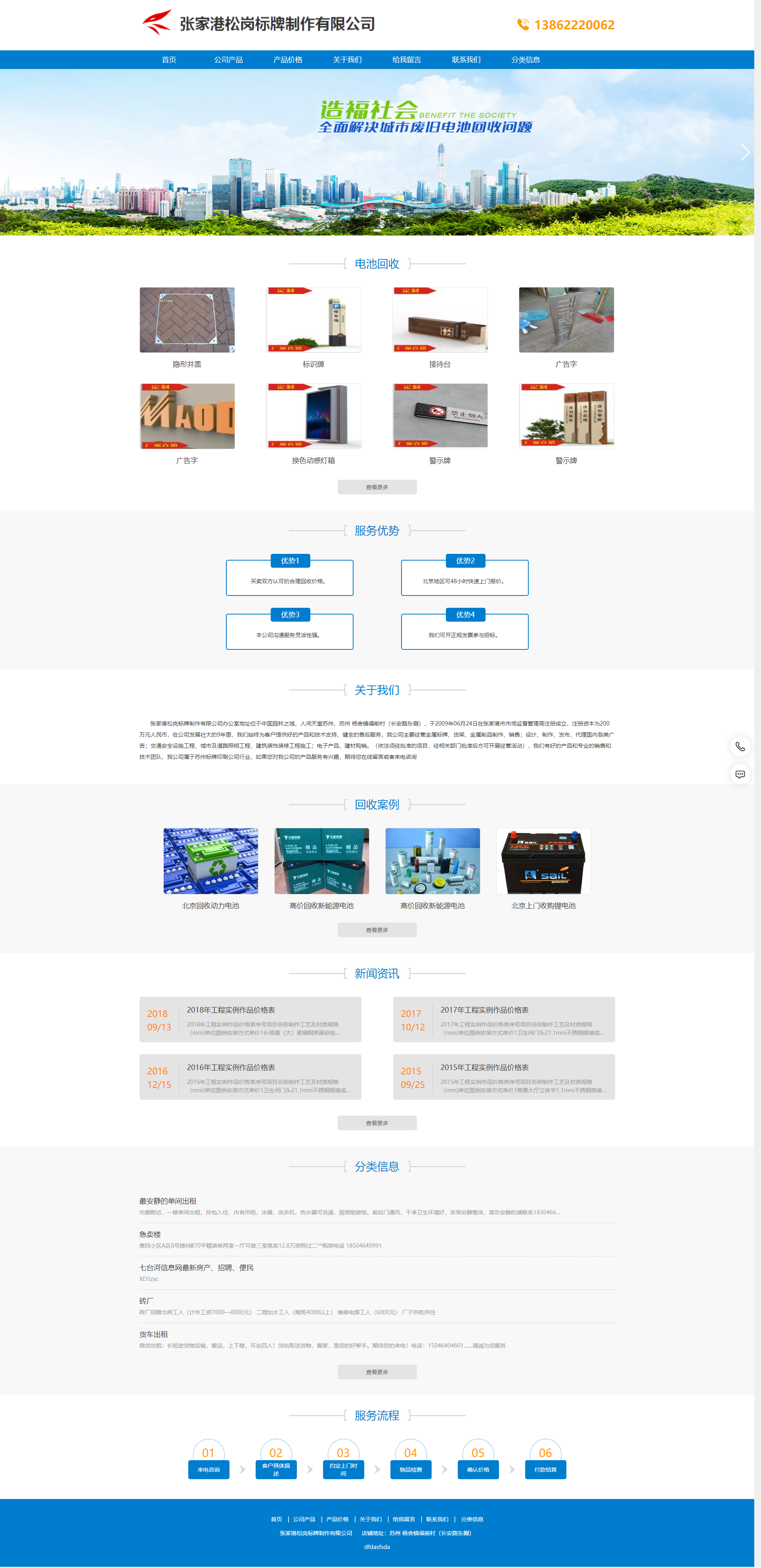 电池回收商家模板,主页底部有分类信息版块,调用用户发布的分类信息列表。
