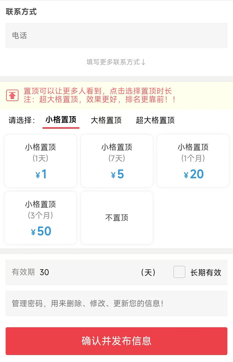 发布页面的置顶选项改为直接显示,升级方法:下载升级包解析覆盖上传template目录,单城市版和多城市版通用。只适用于最新版2025.1
