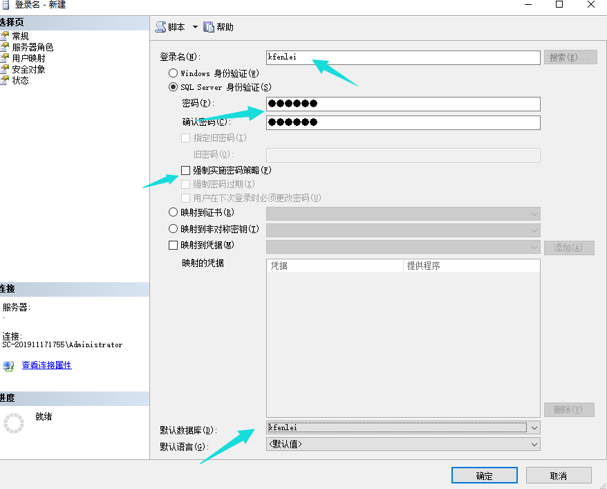 最后点击确定,数据库和数据库登录的账号和密码就全部创建好了