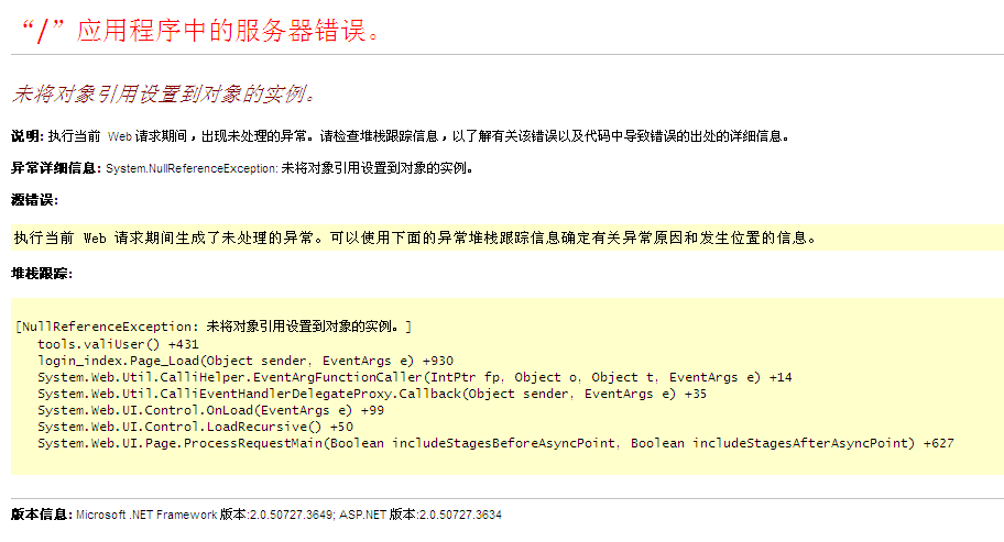 用户登录以后,提示:“/”应用程序中的服务器错误。