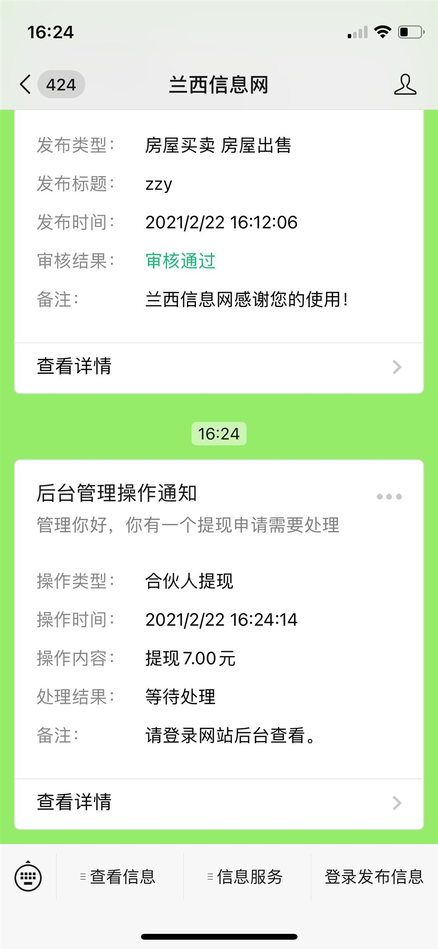 我发了一条发布信息 需要审核的 但微信公众号上没有通知,我上传的图片是别人的后台管理操作通知,而我没有这些