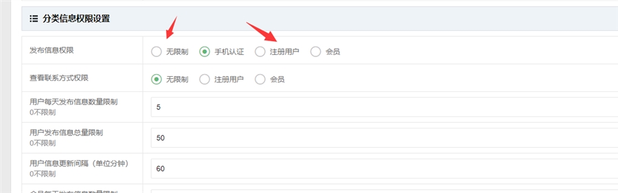 把发布信息权限设置为无限制或注册用户都可以的